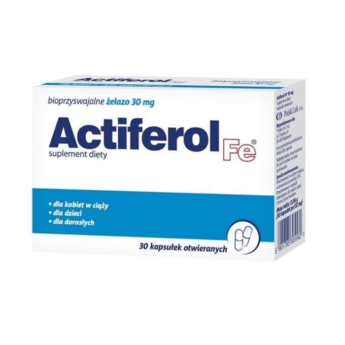Actiferol Fe – ein Nahrungsergänzungsmittel mit Eisen in seiner Zusammensetzung. Das Produkt ist für Erwachsene und Kinder bestimmt.