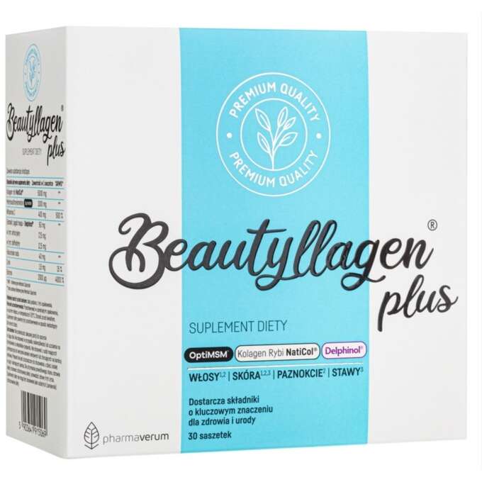 Beautyllagen® ist ein Nahrungsergänzungsmittel in Form eines Pulvers für die Zubereitung eines Getränks zur Ergänzung der Ernährung mit Kollagen und Schwefel. Es enthält auch Biotin, Hyaluronsäure und Vitamin C in seiner Zusammensetzung. Kollagen ist einer der Hauptbestandteile der Haut, der sie fest und straff macht. Im Laufe der Zeit nimmt die Menge an Kollagen deutlich ab, so dass die ersten Anzeichen der Hautalterung auftreten. Daher ist es wichtig, den Körper mit Inhaltsstoffen zu versorgen, die die Kollagenproduktion unterstützen, um das reibungslose Funktionieren von Knochen und Knorpeln zu gewährleisten (Vitamin C) und die Gesundheit von Haut und Haaren zu erhalten (Biotin).