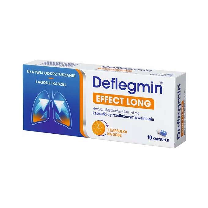 Deflegmin ist ein schleimlösendes Arzneimittel in Form von Kapseln mit verlängerter Wirkstofffreisetzung. Es ist eine moderne Behandlung für feuchten Husten. Sie benötigen nur 1 Kapsel pro Tag.