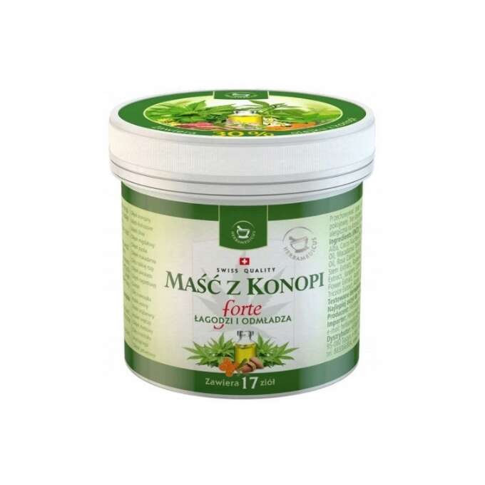 Seine Wirkung wurde durch den Zusatz von Veilchenextrakt, Klette und Melissenöl verstärkt. Hanf-Salbe Forte 125 ml ist eine gute Wahl für Menschen mit trockener Haut, die Probleme mit Reizungen oder Juckreiz haben. Hanföl hat eine stark rückfettende Wirkung und hilft, schuppige Haut zu reduzieren. Es ist eine gute Wahl für Menschen, die zu Irritationen neigen und das Auftreten von Falten reduzieren wollen.