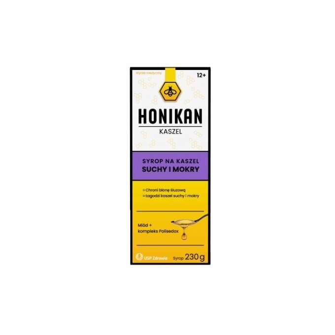 Honikan Husten ist ein medizinisches Produkt auf der Basis von Honig und Polisedox, einem innovativen natürlichen Komplex aus Wegerich, Baldrian und Malve, der reich an Polysacchariden ist und eine auskleidende und beruhigende Wirkung auf die oberen Atemwege hat. Es wirkt bei produktivem Husten, indem es hilft, den Schleim zu befeuchten und zu lösen; es wirkt auch bei trockenem Husten, indem es Schleimhautreizungen entgegenwirkt.