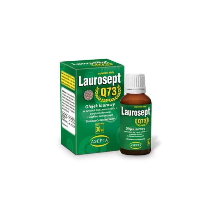 Laurosept Q73 ist ein Nahrungsergänzungsmittel, eine Kombination aus Lorbeeröl und Kurkumaöl, die den Knorpel und das Skelettsystem nährt und verbessert. Es hat wärmende und entspannende Eigenschaften.