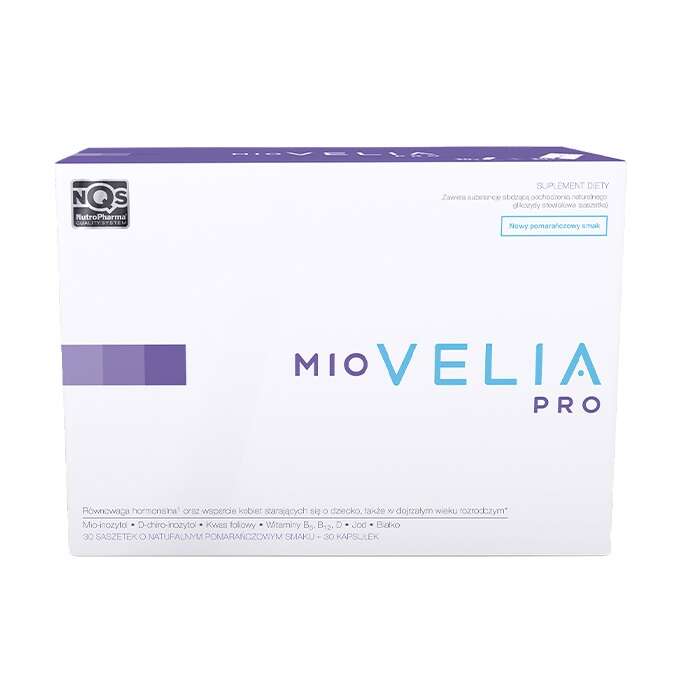 Miovelia PRO ist ein Nahrungsergänzungsmittel für Frauen mit Kinderwunsch, bestehend aus Beuteln zur Herstellung einer Suspension und Vitamin- und Mineralstoffkapseln. Der Beutel enthält Myo- und D-Chiro-Inositol (manchmal auch als B-Vitamine bezeichnet) und Molkenprotein. Die Inhaltsstoffe unterstützen den Hormonhaushalt, der einen wesentlichen Einfluss auf die Möglichkeit einer Empfängnis hat. Die speziell ausgewählten Inhaltsstoffe sind wichtig für die Regulierung des Eisprungzyklus, des Kohlenhydratstoffwechsels und die Erhöhung der Insulinempfindlichkeit des Gewebes.