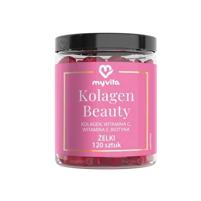 MyVita Collagen Beauty ist ein Nahrungsergänzungsmittel in Form von natürlichen Gelen, die Kollagen, Vitamin C, Vitamin E und Biotin enthalten.