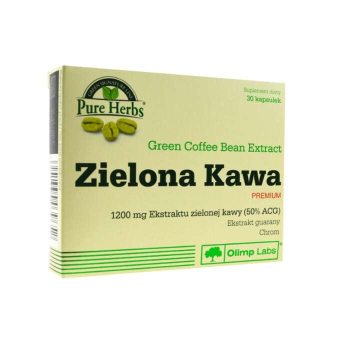 Green Coffee PREMIUM ist ein Nahrungsergänzungsmittel in Form von Kapseln, die eine Zusammensetzung aus pflanzlichen Inhaltsstoffen enthalten – Grüner Kaffeesamenextrakt, standardisiert auf einen Gehalt von 50% Chlorogensäure (ACG) und Guarana-Samenextrakt; zusätzlich ergänzt mit Chrom.