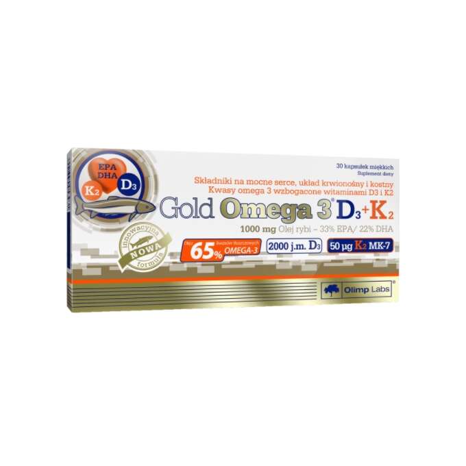– Gold Omega 3 D3 + K2 ist ein Nahrungsergänzungsmittel mit einem hohen Gehalt an Omega-3-Fettsäuren, ergänzt durch einen hohen Anteil an natürlichem Vitamin K aus Natto, das in der am besten absorbierbaren und aktiven Form1 – Menachinon 7 (Vitamin K) – vorliegt. Das Produkt enthält auch Vitamin D in einer Konzentration von bis zu 2000 IU.