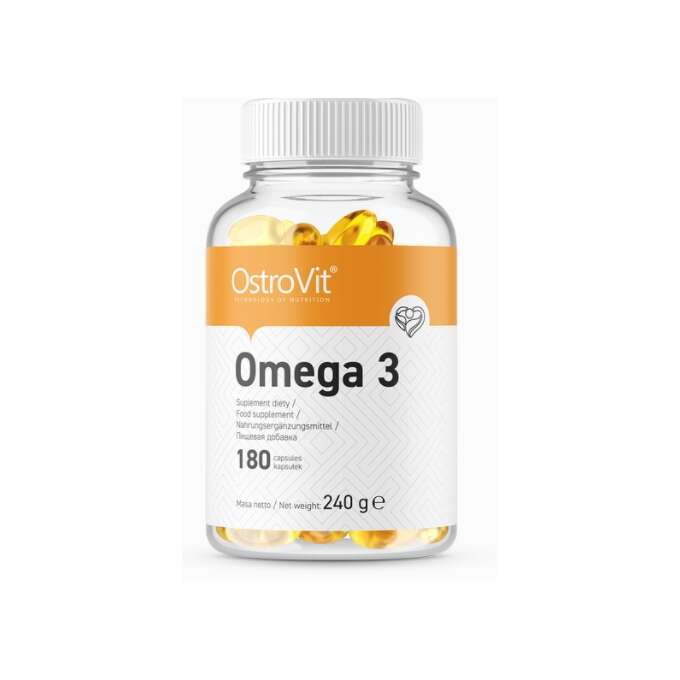 OstroVit Omega 3 180 Kapseln ist ein gesundheitsförderndes Nahrungsergänzungsmittel auf Basis von Fischöl. Es enthält Omega-3-Fettsäuren, die die Herz- und Hirnfunktion unterstützen und die Blutgefäße stärken. EPA und DHA wirken sich positiv auf die geistigen Funktionen aus, verbessern Gedächtnisprozesse, Fokussierungsvermögen und Konzentration.