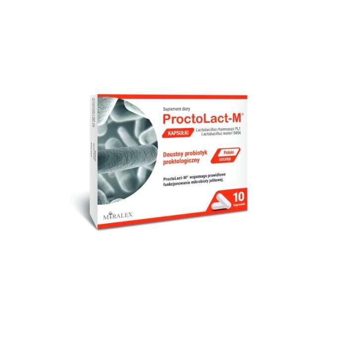 Das Nahrungsergänzungsmittel ProctoLact-M ist für die Ergänzung der täglichen Ernährung mit probiotischen Bakterien – Lactobacillus rhamnosus PL1 und Lactobacillus reuteri 5454 – bestimmt.
