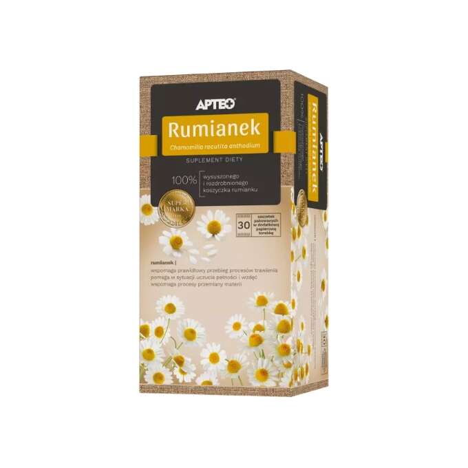 – Getrocknetes und zerkleinertes Kamillenblütenkörbchen (Chamomilla recutita L.) 100 %. 1,5 g 3 g