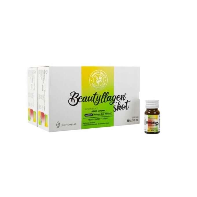 Beautyllagen Shot – ist ein Nahrungsergänzungsmittel in Form von Shots, das die Ernährung mit Kollagen und Vitamin C, A, E und Niacin ergänzt. Es enthält außerdem Biotin, organischen Schwefel in Form des OptiMSM-Komplexes und Hyaluronsäure.