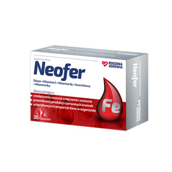 Das Nahrungsergänzungsmittel Family Health Neofer wird zur Ergänzung der täglichen Ernährung mit Eisen und ausgewählten Vitaminen bei Erwachsenen empfohlen. Es enthält Eisen in Form von Eisendiglycinat, sowie Folsäure und Vitamine: C, B6, B12. Dank seines Gehalts an Eisen und Vitamin B12 trägt es zur Verringerung von Müdigkeit und Ermüdungsgefühlen bei.