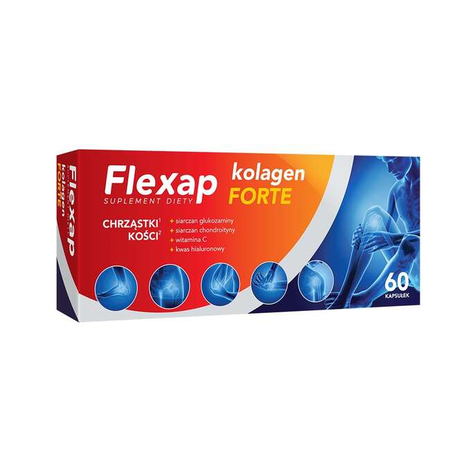 Flexap Collagen FORTE ist ein Nahrungsergänzungsmittel, das 5 Inhaltsstoffe in einer Kapsel vereint und die tägliche Ernährung ergänzt. Das Produkt enthält Rinder- und Schweinekollagen, Glucosaminsulfat, Chondroitinsulfat, Hyaluronsäure und Vitamin C, was es zu einer geeigneten Option für diejenigen macht, die eine Ergänzung für ihren täglichen Speiseplan suchen.