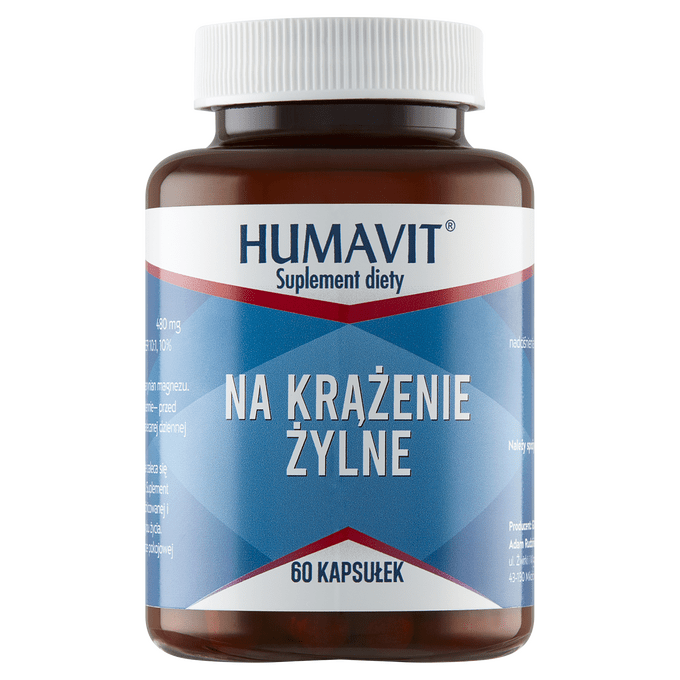 Humavit Nahrungsergänzungsmittel für den venösen Kreislauf. Das Produkt enthält einen Extrakt aus Centella Asiatica (auch bekannt als Gotu kola).