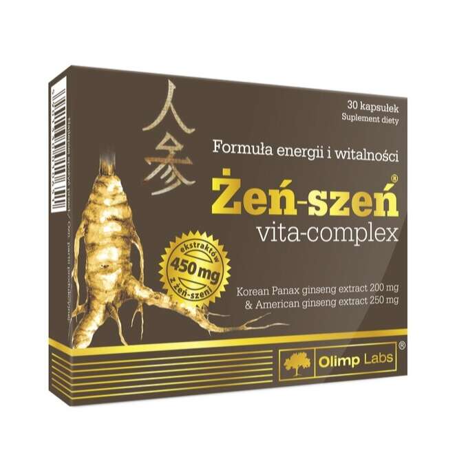 Ginseng ENERGIE UND VITALITÄT FORMEL VITA-COMPLEX Ginseng Nahrungsergänzungsmittel in Kapseln, eine Zusammensetzung aus standardisierten Extrakten höchster Qualität aus zwei Ginsengarten, zusätzlich angereichert mit schwarzem Pfefferextrakt und einem Komplex aus 12 Vitaminen. Der an Ginsenosiden reiche Ginsengextrakt trägt zur Aufrechterhaltung der Vitalität und der körperlichen und geistigen Leistungsfähigkeit des Organismus bei. Darüber hinaus tragen die im Produkt enthaltenen Vitamine (Riboflavin, Niacin, Vit. B6, B12, C) dazu bei, das Gefühl von Müdigkeit und Ermüdung zu verringern.