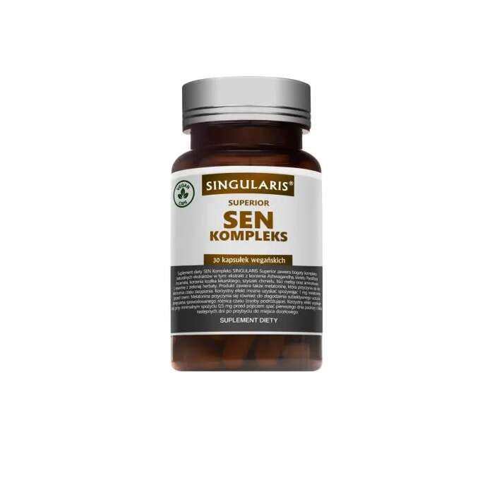Das Nahrungsergänzungsmittel SEN Complex SINGULARIS Superior enthält einen reichhaltigen Komplex natürlicher Extrakte, darunter: Extrakt aus der Ashwagandha-Wurzel, Passiflora incarnata Blüte, Baldrianwurzel, Hopfenzapfen, Melissenblätter und die Aminosäure L-Theanin aus grünem Tee. Das Produkt enthält außerdem Melatonin, das dazu beiträgt, die Einschlafzeit zu verkürzen. Eine positive Wirkung kann durch die Einnahme von 1 mg Melatonin vor dem Schlafengehen erzielt werden. Melatonin trägt auch dazu bei, das subjektive Gefühl der Müdigkeit, das durch die Zeitverschiebung (Reisende) verursacht wird, zu lindern. Eine günstige Wirkung wird mit einer Mindestzufuhr von 0,5 mg vor dem Schlafengehen am ersten Reisetag und einige Tage nach der Ankunft am Zielort erzielt.