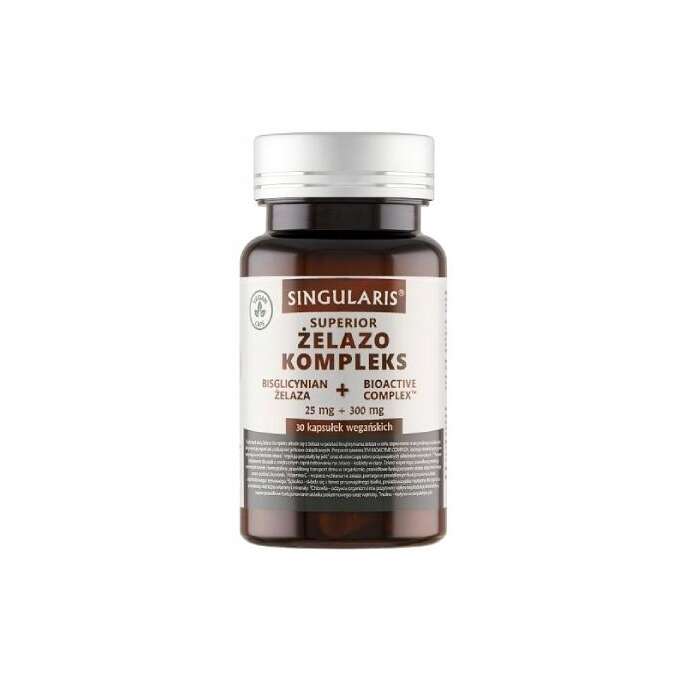 Singularis® Superior Iron Complex ist ein Nahrungsergänzungsmittel in Form von veganen Kapseln. Die Formel verwendet Eisen in Form eines Chelats – Eisenbisglycinat – das eine ausreichende Aufnahme des Wirkstoffs gewährleistet. Die Formel wurde zusätzlich mit Bioactive Complex™ angereichert, um die tägliche Ernährung von Erwachsenen zu ergänzen.